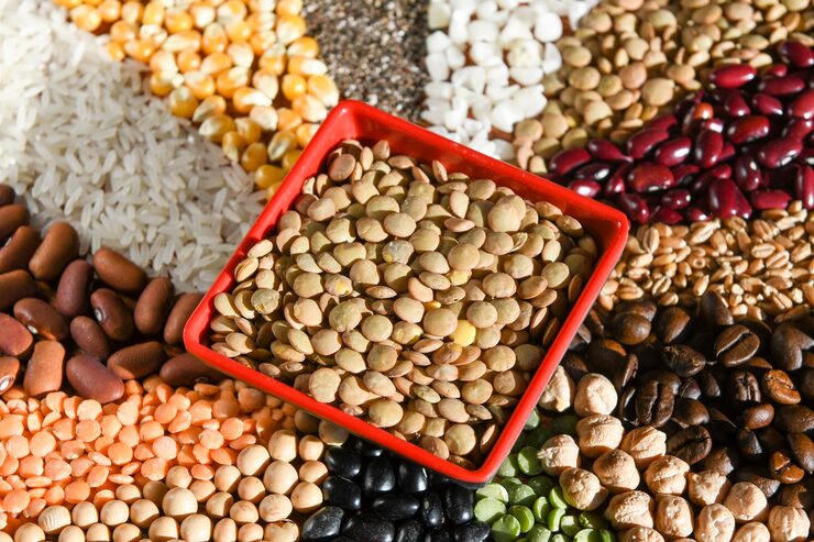 Groupe de cultures de base comprenant des grains et des plantes riches en protéines, constituant une source alimentaire majeure et jouant un rôle clé dans la sécurité alimentaire et la diversification des systèmes de production.